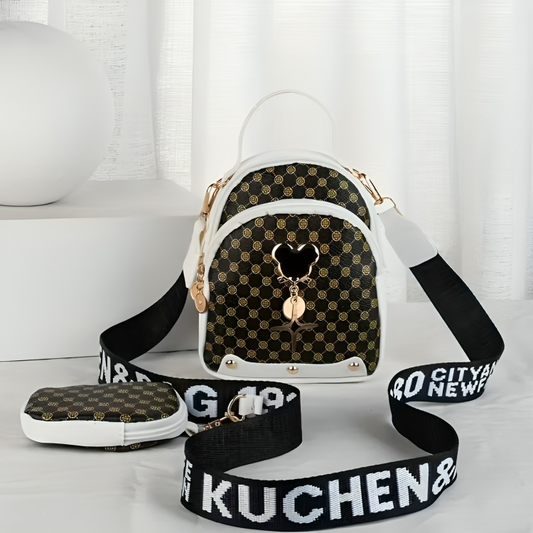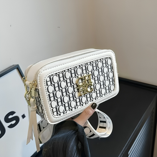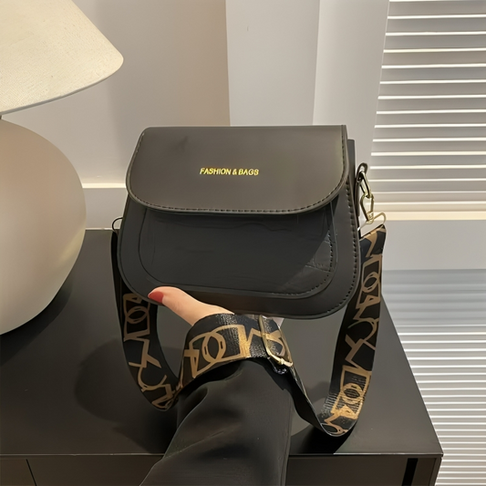Women’s Small Crossbody Bag with Wide Letter-Print Strap